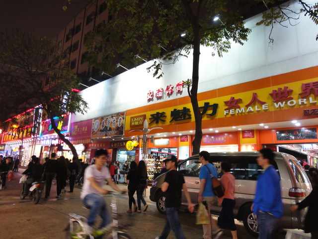 一路上有許多"購物城"或"商場",裡面類似台北西門町的"萬年大樓"或高雄新崛江的"原宿廣場",有許多小店面可逛