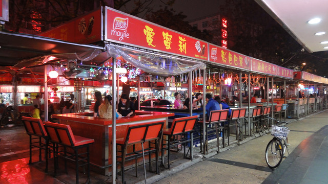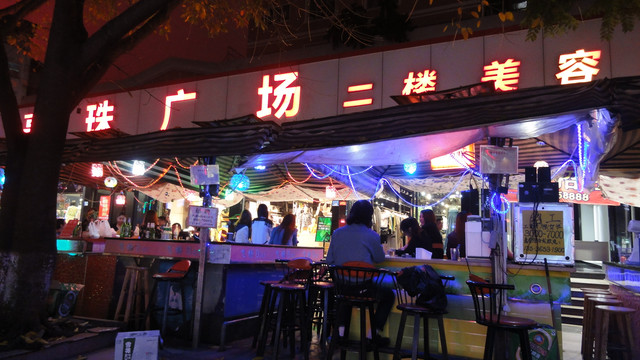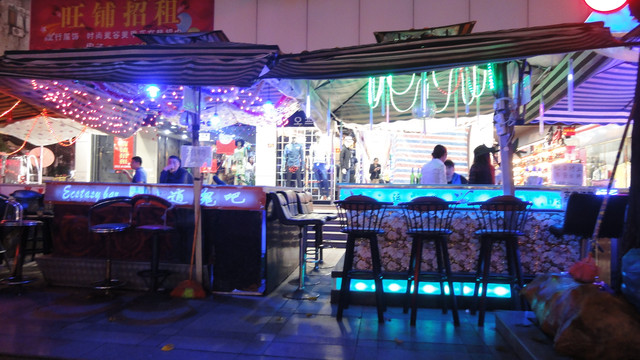 路邊有兩排露天吧檯,晚上點燈後,氣氛很不一樣