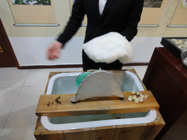 一進來立刻有門市人員帶領大家參觀養蠶過程及蠶絲的抽取、製作過程