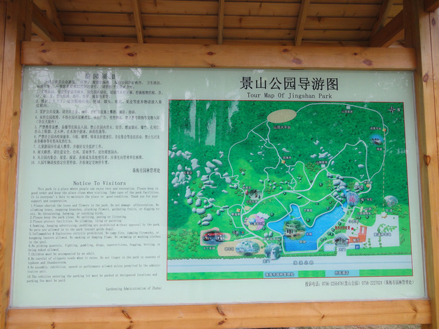 景山公園目前有:山頂觀景區、山腰石景區、湖畔游憩區、索道滑道區、大型遊樂場區