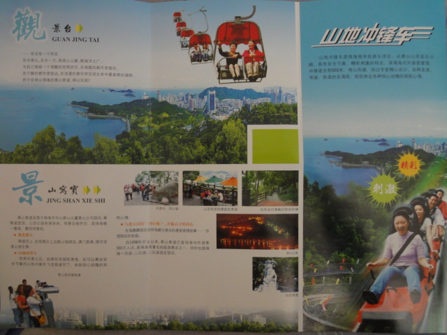 乘索道登臨山頂,極目所至:東方明珠-香港,南望東方蒙地卡羅-澳門,放眼綠樹成蔭的珠海全貌,俯瞰近在咫尺的“香爐”、“漁女”和遙望玉珠滴翠、蜿蜒海邊的“情侶路”,置身如畫美景使人倍感"浪漫之城"現代而浪漫的氣息