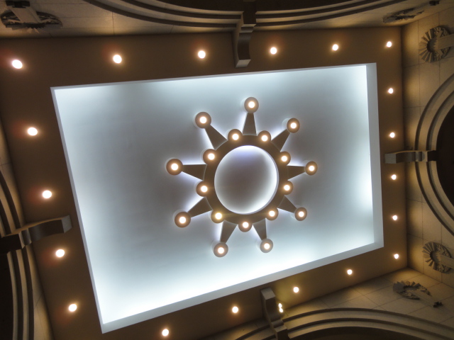 一樓大廳天花板的燈飾是國民黨黨徽,這個在中國應該很罕見