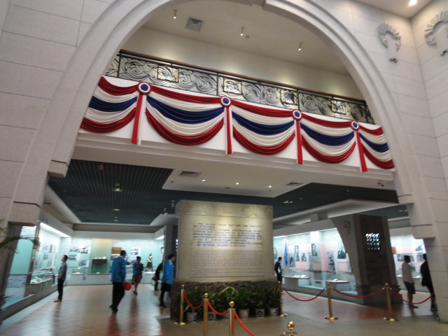 一樓大廳的藍+白+紅三色幕帳,正是我們的國旗色阿!