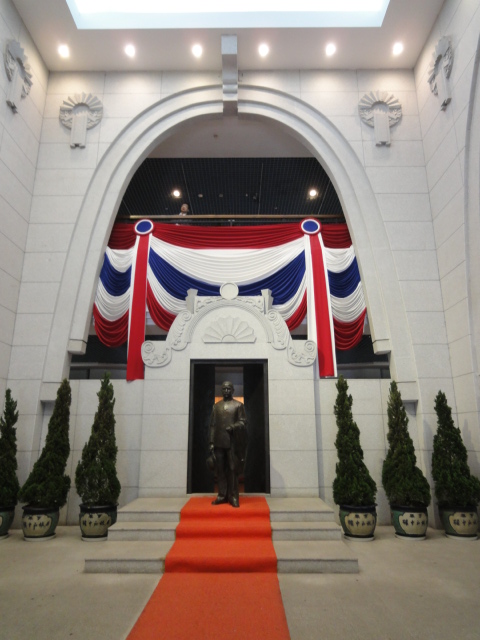 一樓大廳的挑高廣場上,擺放的正是國父雕像
