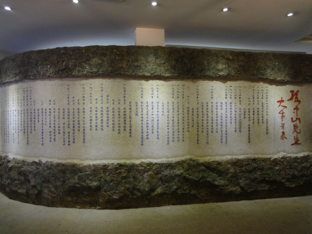大廳右邊的石牆長長一面,上頭刻的正是孫中山先生大事年表
