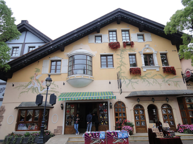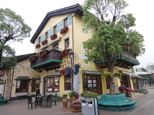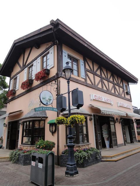 方才遊園車有經過這裡,看到這種歐式建築+萬國國旗,我就忍不住想衝進來一探究竟~