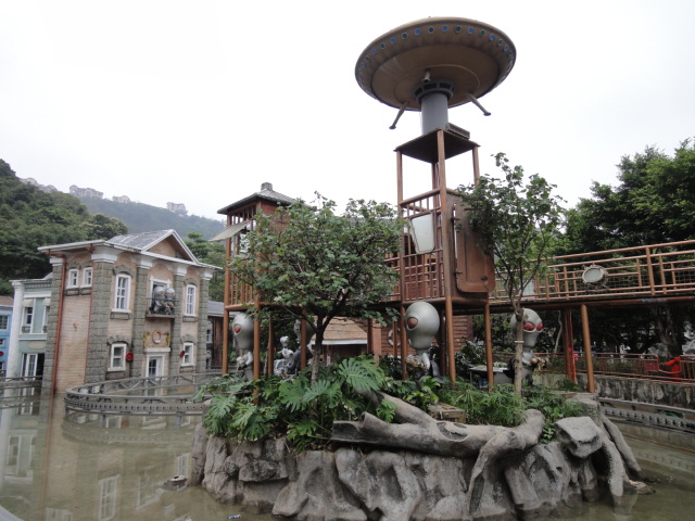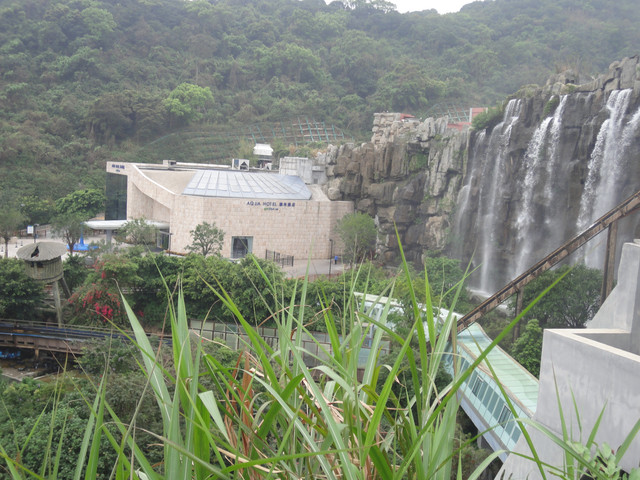 這裡可以遠眺超刺激的設施"峽灣漂流",船隻穿梭瀑布間,真的很刺激,由於軌道太長,角度不佳,只能拍到一小部分