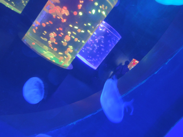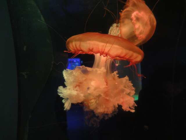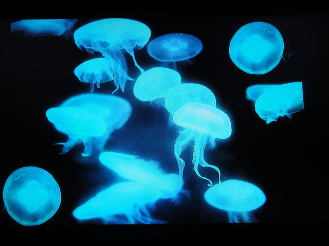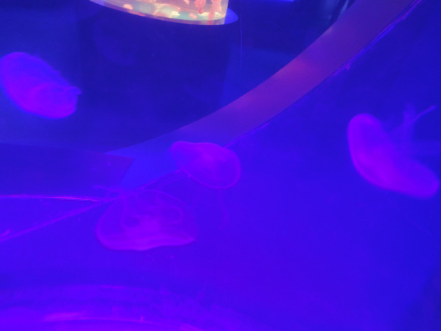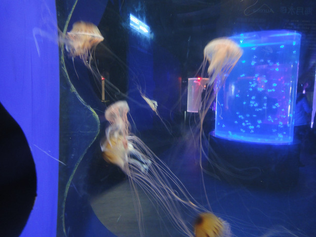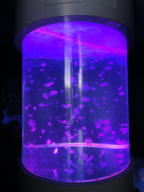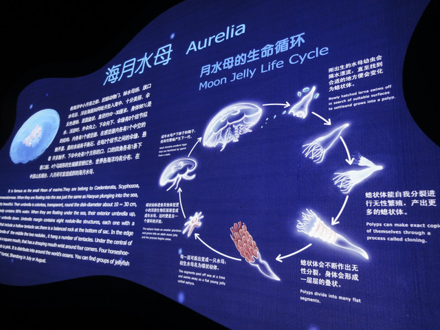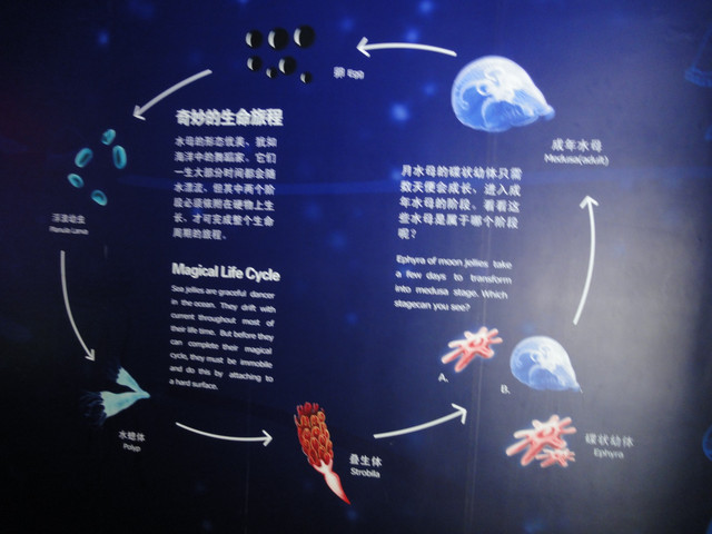 由於水母大多是透明的,加上室內燈光昏暗且禁用閃光燈,所以部分照片有點模糊不清