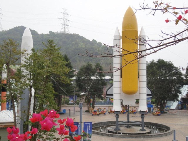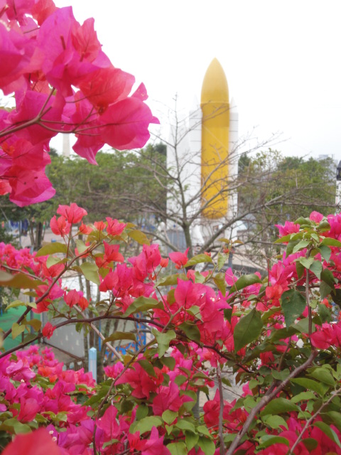 花欉後的廣場有超大太空梭,廣場上都是火箭,很像準備前往太空世界般,讓人興奮期待~