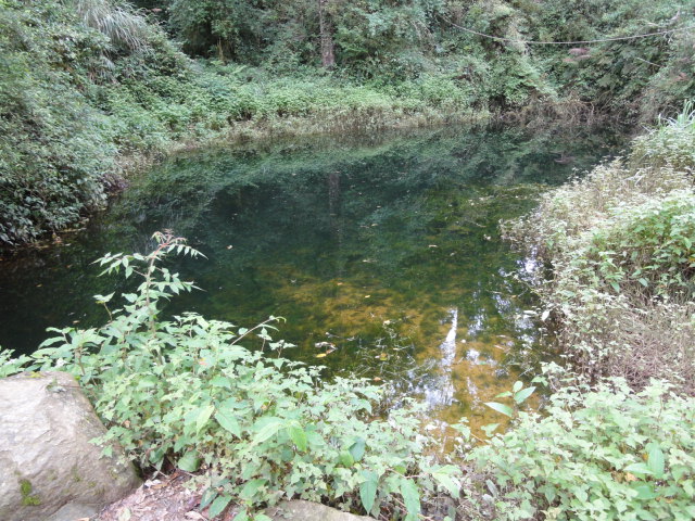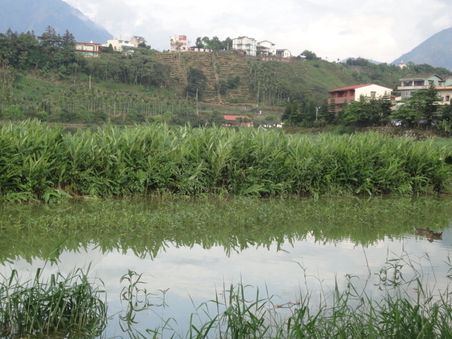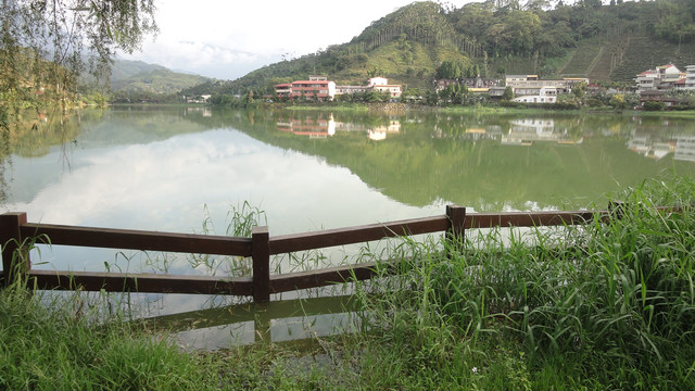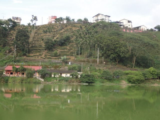 四周丘陵環抱,梯田形的茶樹整齊排列在潭邊山麓,遍植茶樹,潭中養魚,可供垂釣