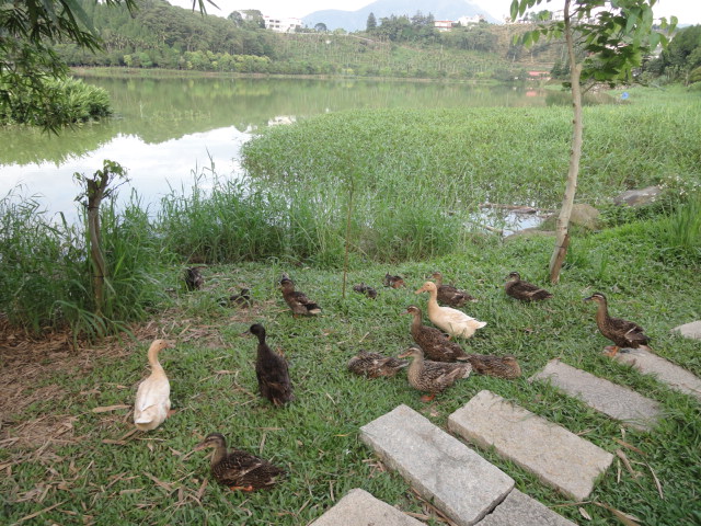 沿著環潭步道散步一圈,欣賞自然的湖水山色,可見綠頭鴨在潭中幽遊