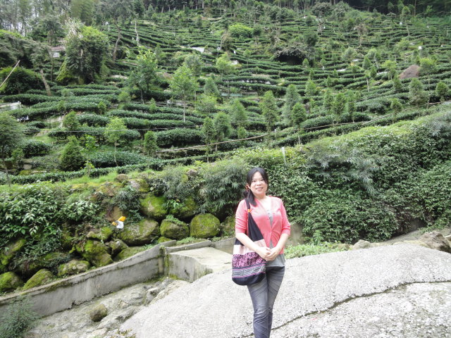看到忘憂森林入口的茶園,就不難想像這座山有多麼陡峭了!為了省錢,也為了運動,我們當天硬是不搭接駁車,決定一路靠雙腿爬上去~