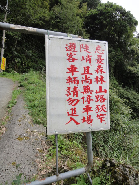 2013-06-01下午14:30抵達忘憂森林入口處。快到忘憂森林前的路邊,就有茶行的業者在路邊攬客,問需不需要搭車上山(每人一趟100元),可直達忘憂森林