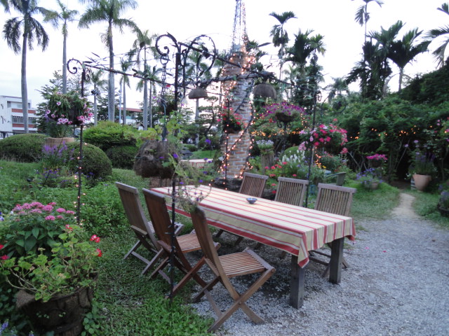 由於天色漸晚,很難拍出花園美景,所以就近拍一張花朵照片作代表即可