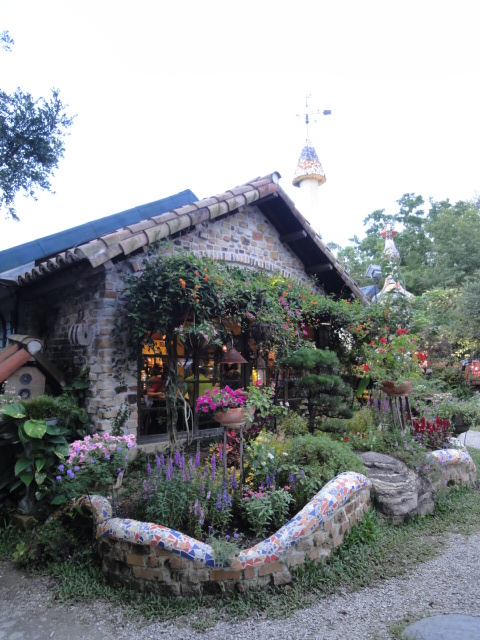 馬賽克磁磚拼貼成的不規則低矮圍籬,別具一番美感