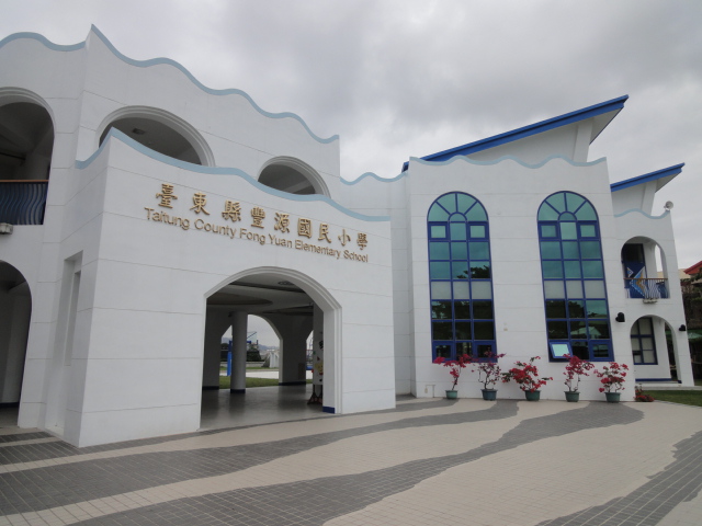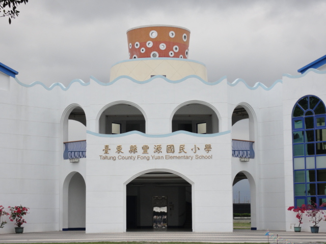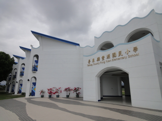 台東豐源小學創立於民國52年,因建築物年老失修,漏水嚴重,學校兩年前申請教育部擴大內需計畫,以4千8百萬經費,重建校園,為了配合學校依山傍海的環境,加上想改變學校給人硬梆梆建築的刻板印象,最後選中了地中海式藍、白基調建築風格