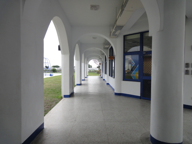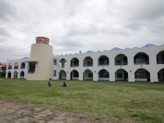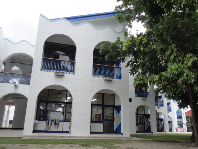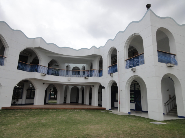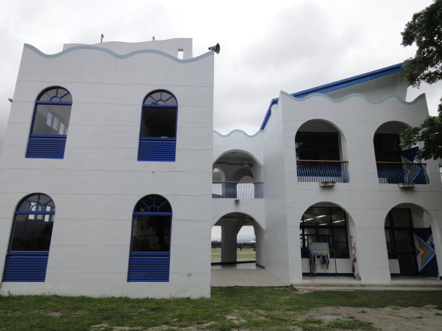 兩年前將校園全新規劃,改建校舍建築、運動場,這棟地中海藍白景致外觀的新建築,具地中海風的新校舍在2010年3月落成囉!