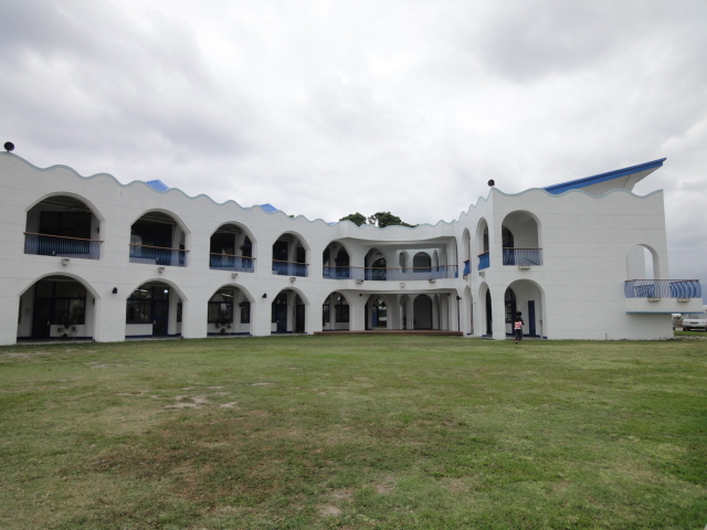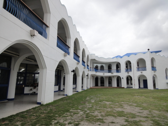 潔白純淨的建築,搭配屋頂的海藍,加上學校附近沒有高大建築物,顯得校區更加寬廣