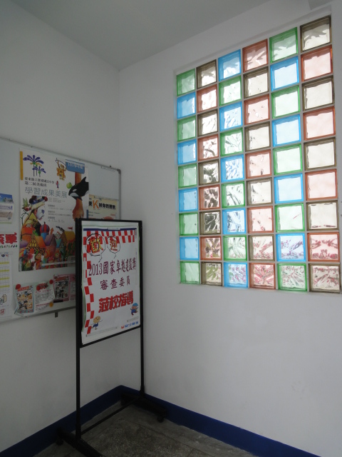 我最喜愛的場景,是這兩扇很高的長型藍色窗戶,挑高的窗戶氣勢十足,其他國小保證見不到喔!