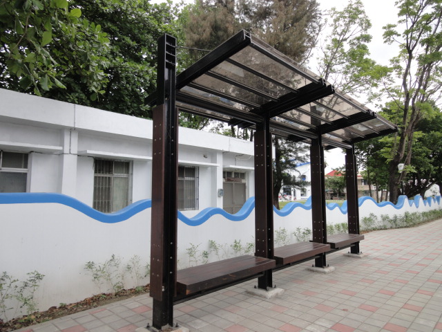 在藍白波浪狀圍牆外往裡看,也別有一番風情