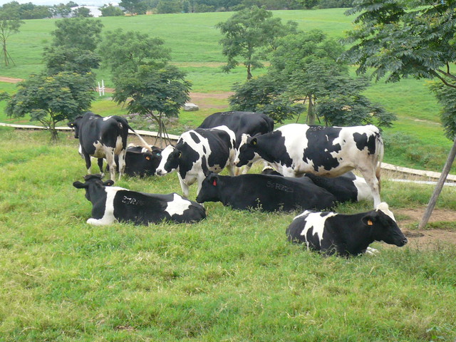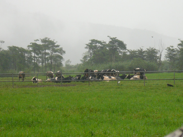 由於山坡平緩,排水良好,且雨量豐沛,氣候溫和,牧場裡種植了大面積的熱帶盤固拉牧草作為乳牛的食草。