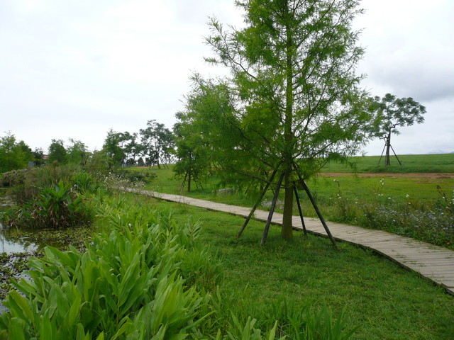 結合綠化,採用更多自然造景,不用紅磚水泥,採用大、小石塊自然舖成的步道