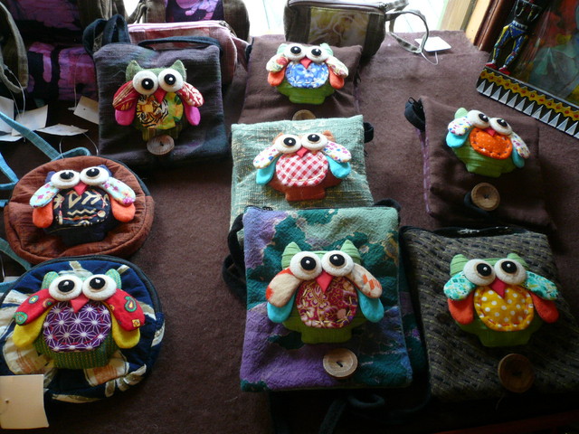 可愛又鮮豔的手做布製貓頭鷹零錢包及吊飾